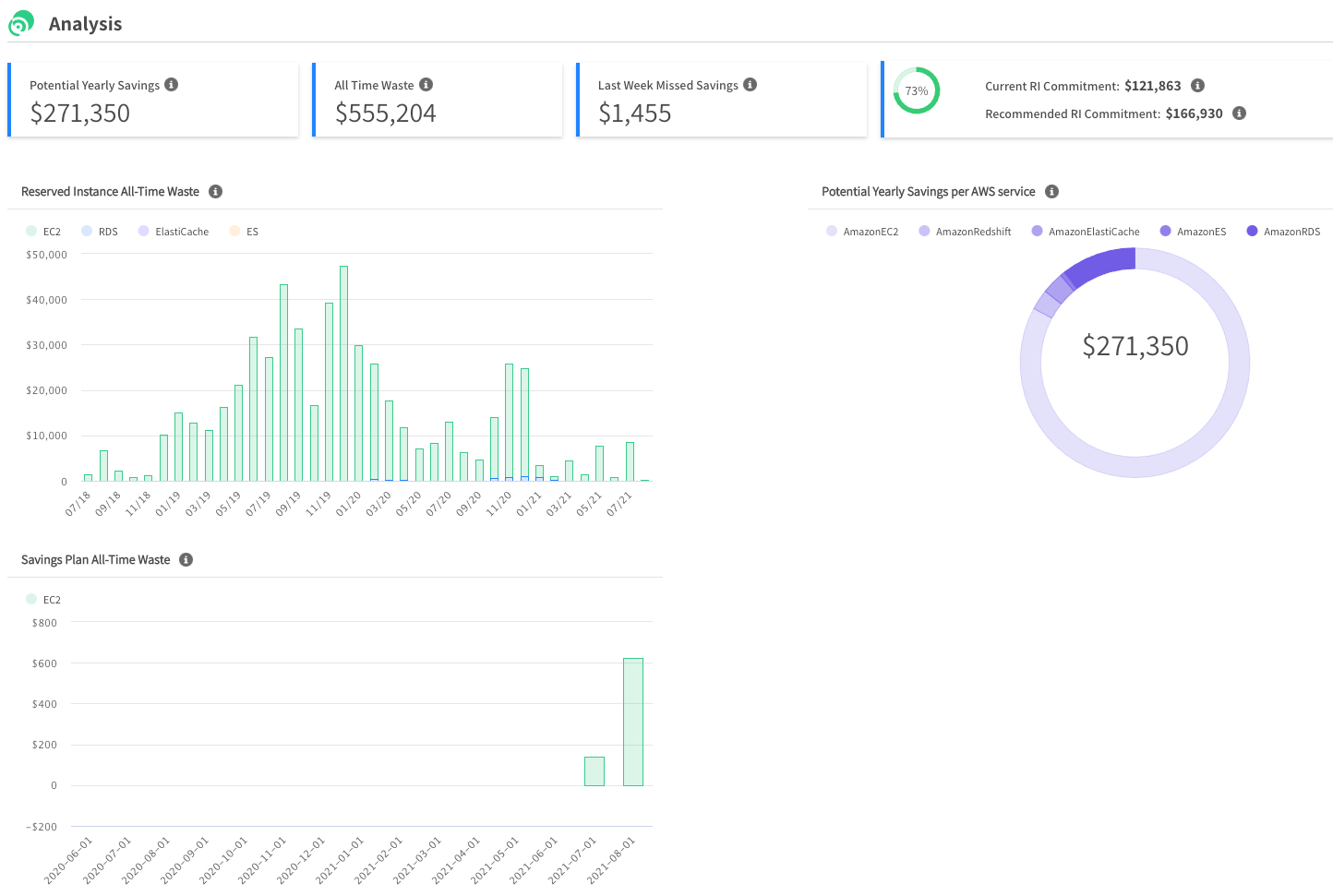 • All time Waste: Amount wasted on unused reserved instances.