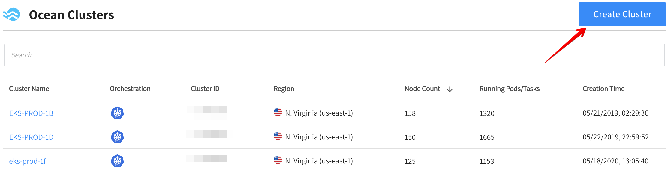 1. In the Spot Console's left menu, click Ocean/Cloud Clusters > Create Cluster.